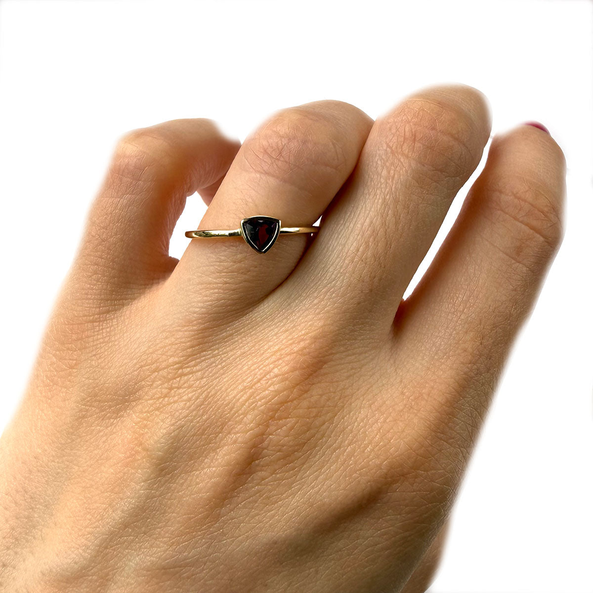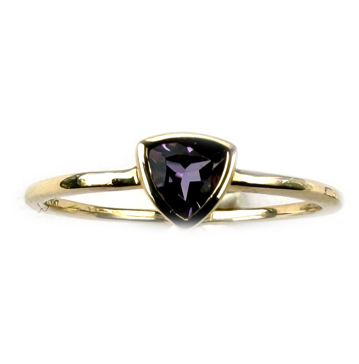 Anillo en oro amarillo 10K con amatista trillion biselada