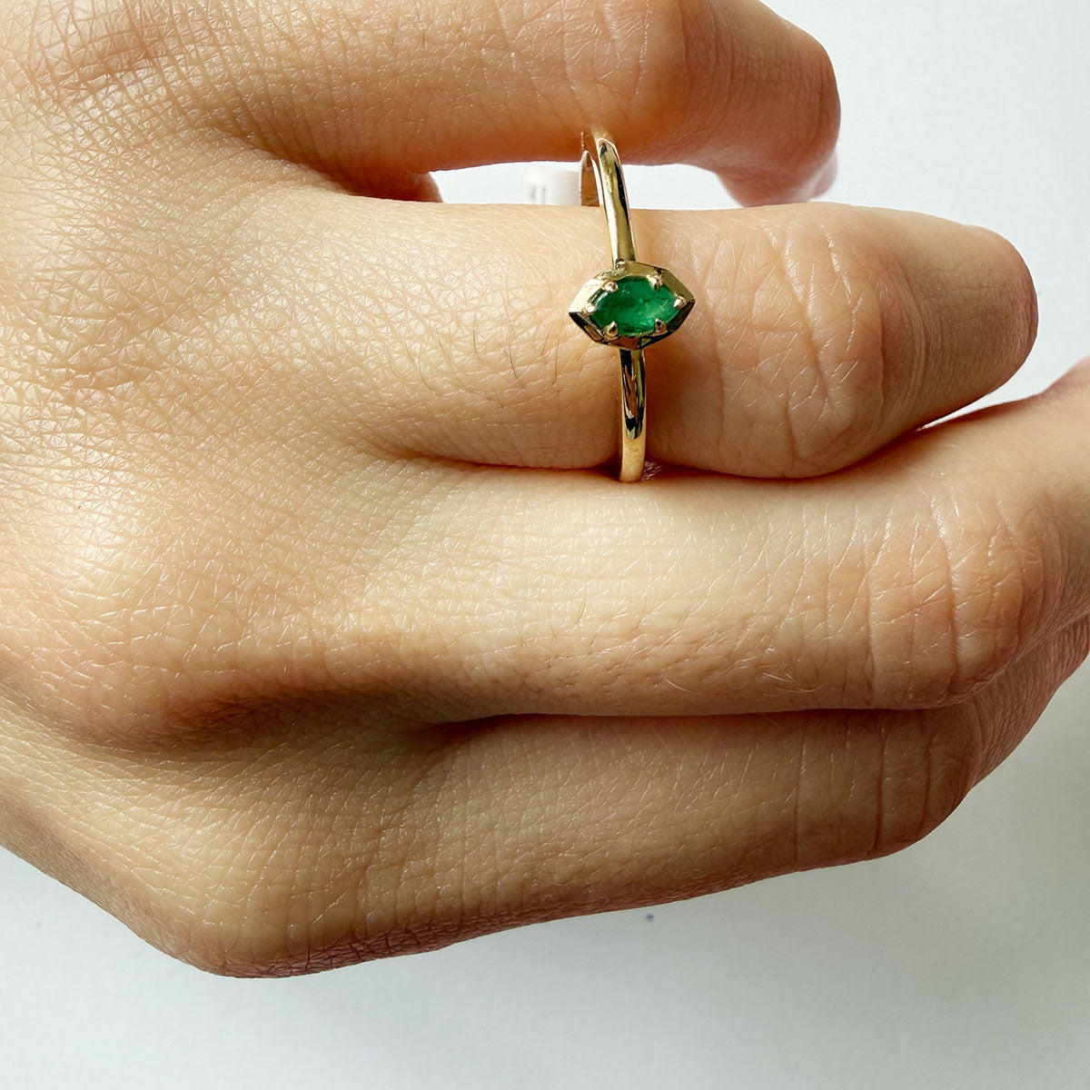 Anillo en oro amarillo 14K con esmeralda corte marquesa 0.11ct