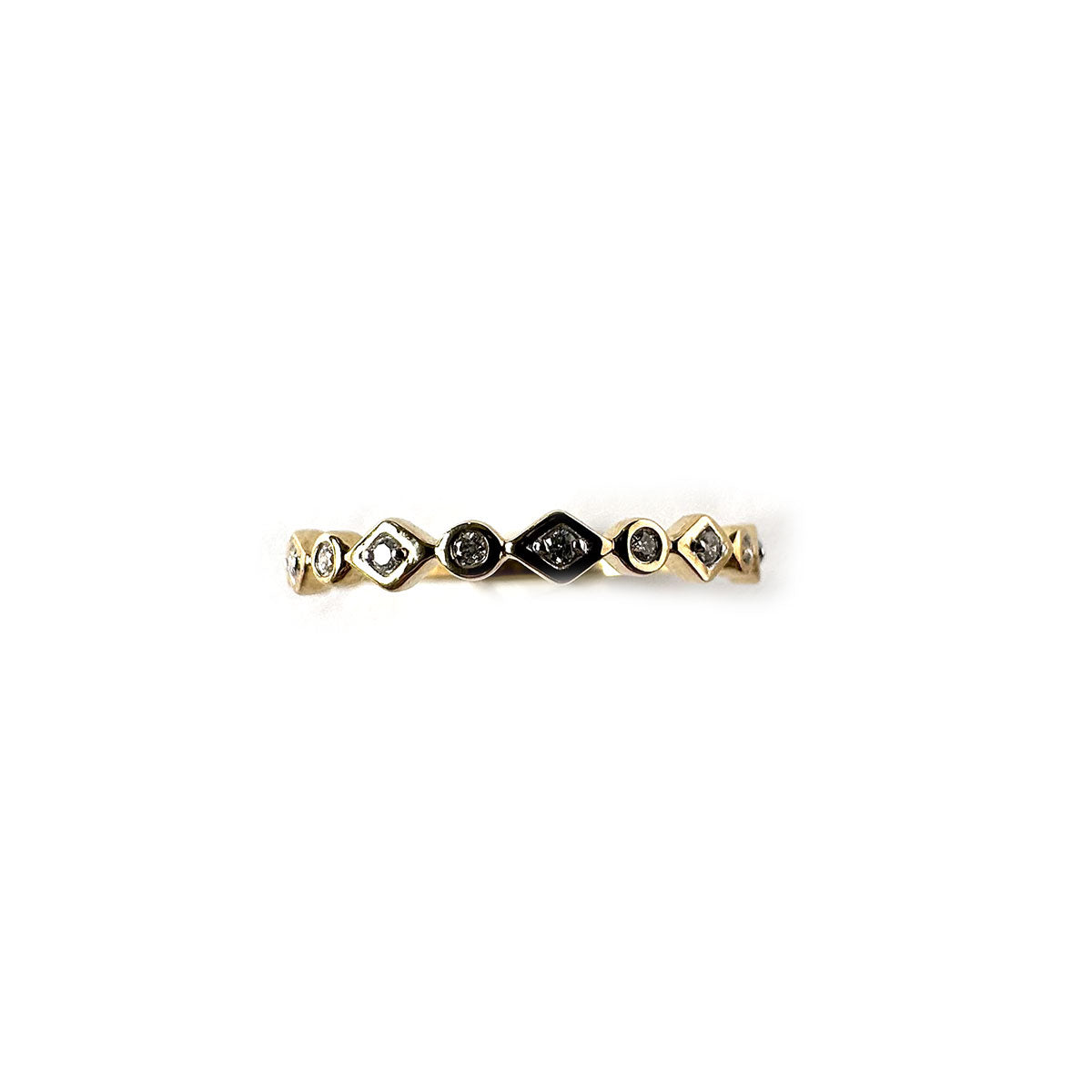 Anillo medio cintillo de rombo y círculo con diamantes 0.10ctw en oro amarillo 10k