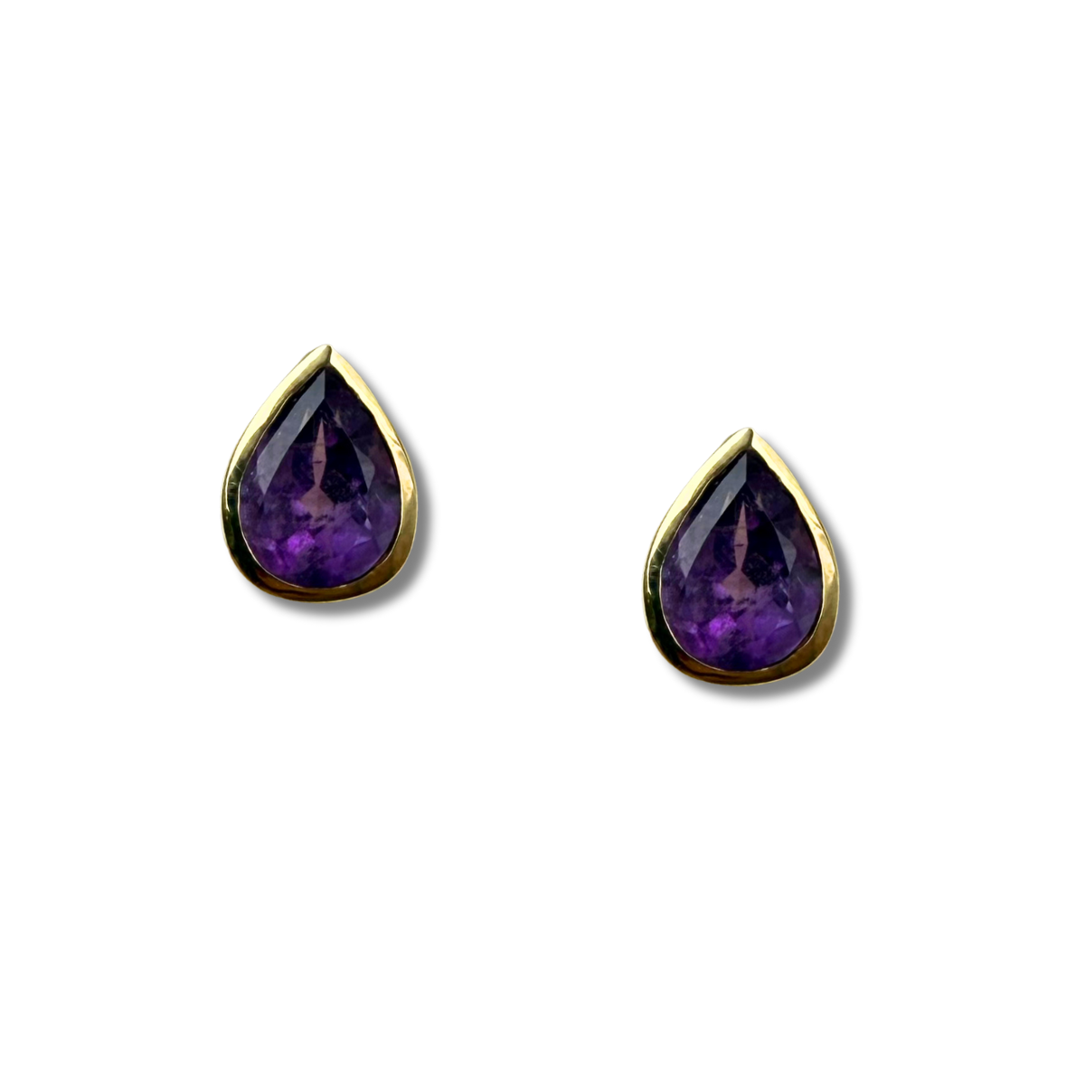 Aretes en oro amarillo 10K con gota de amatista biselada