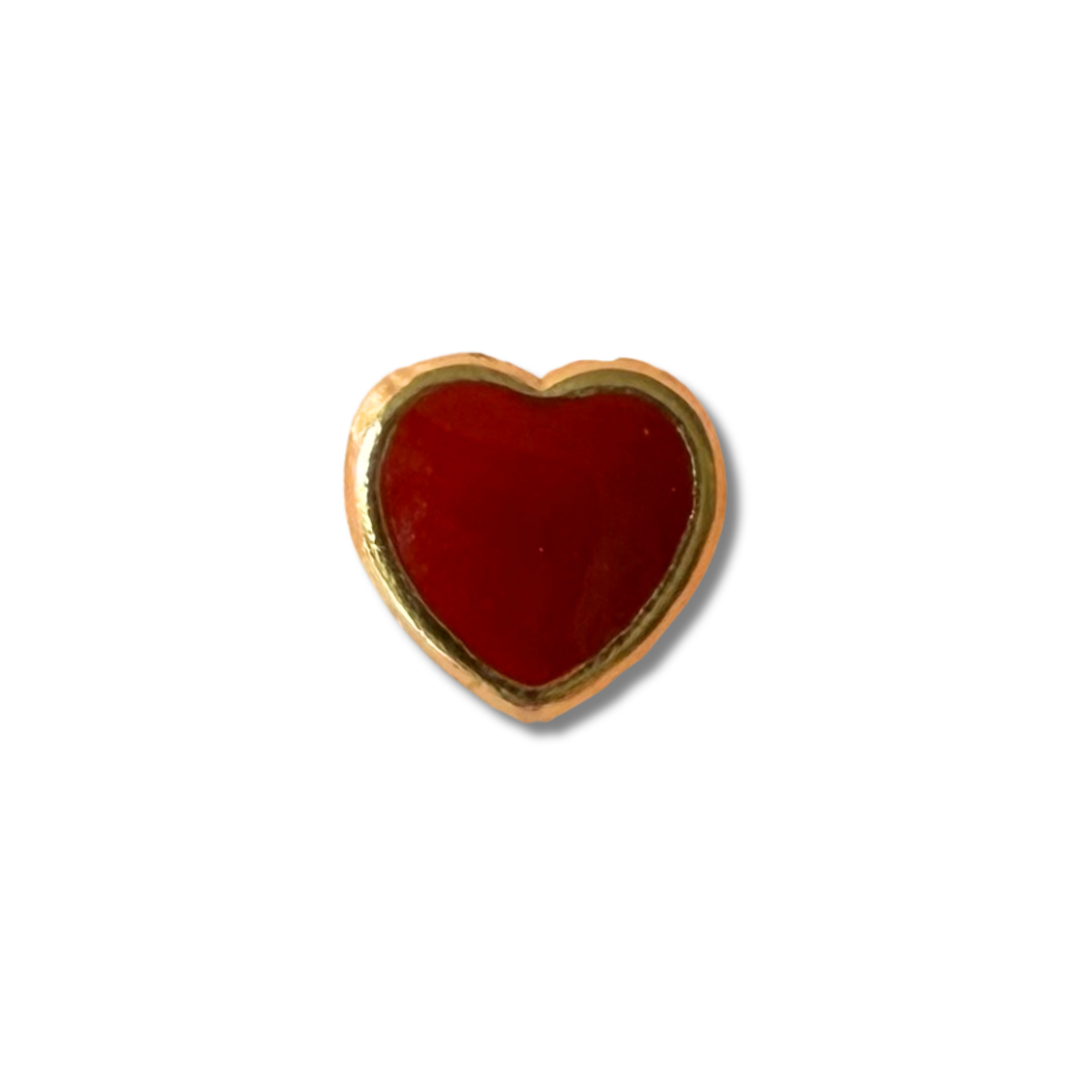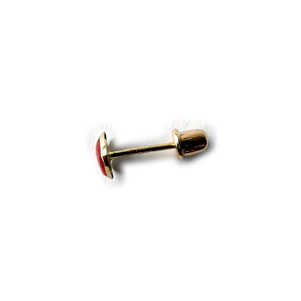 Arete en oro amarillo 14K con corazón esmaltado rojo con tope rosca