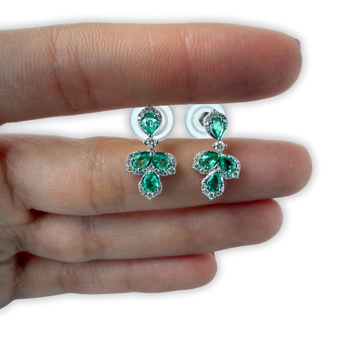 Aretes mini chandelier en oro blanco 14K con esmeraldas 1ctw y diamantes 0.32 cta