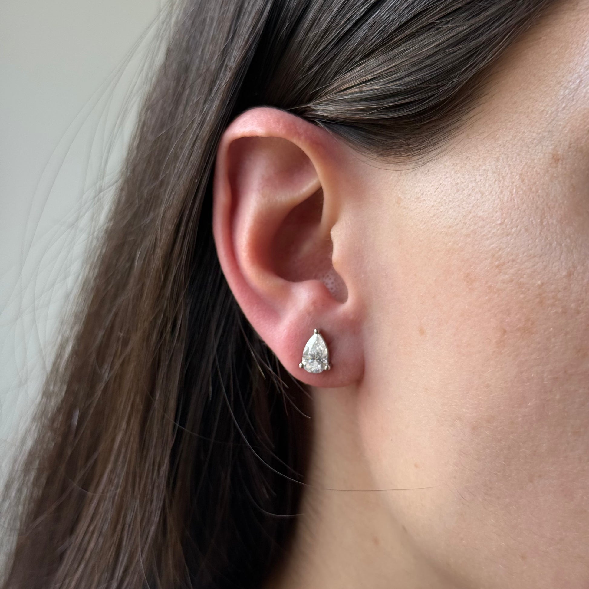 Aretes studs de moissanitas corte pera 2ctw en plata