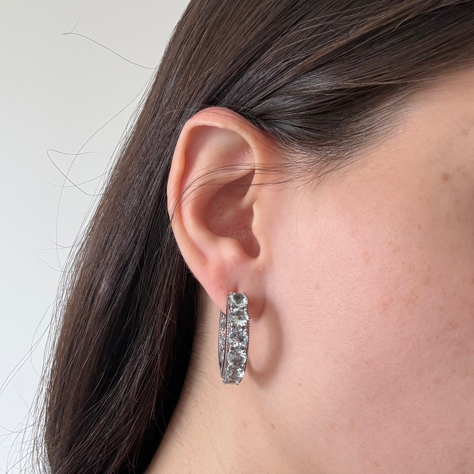 Argollas de plata con aquamarinas redondas