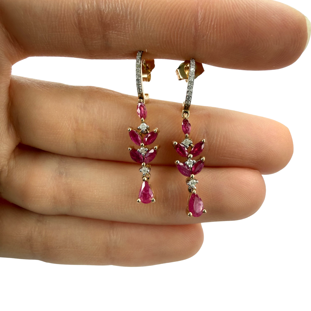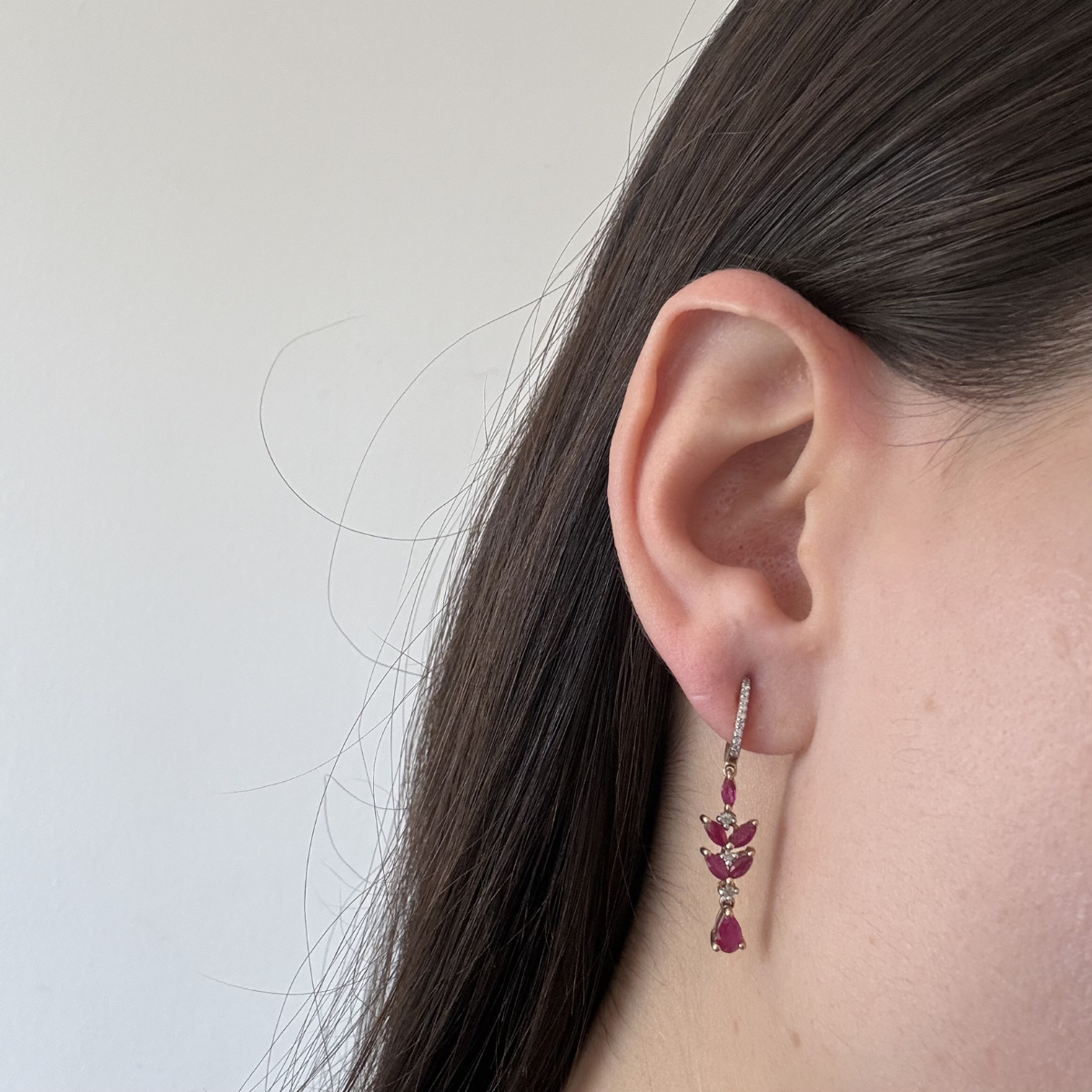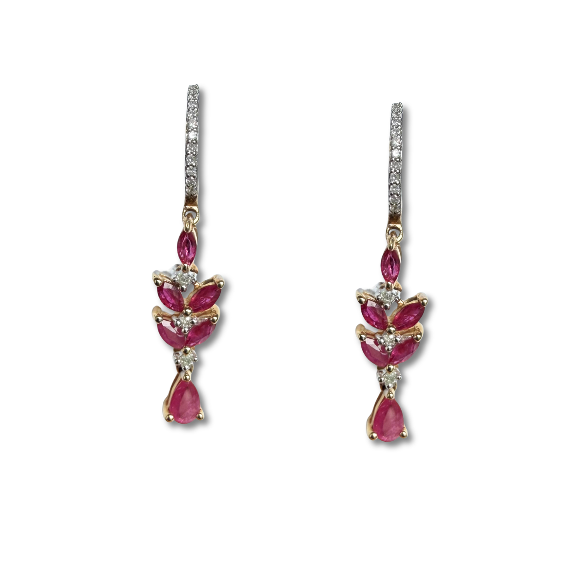 Argollas en oro amarillo 14K con rubíes y diamantes