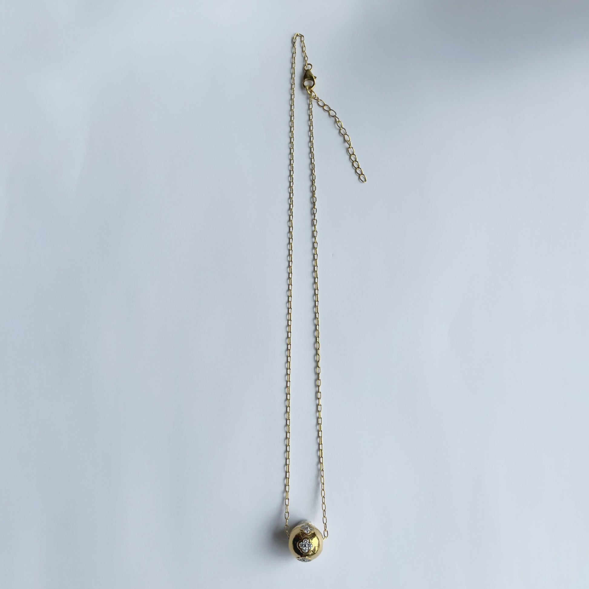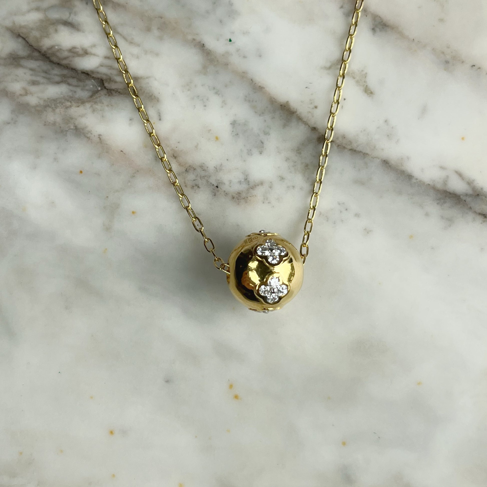 Cadena de plata con baño de oro amarillo con bolita con diamantes de laboratorio 1ctw
