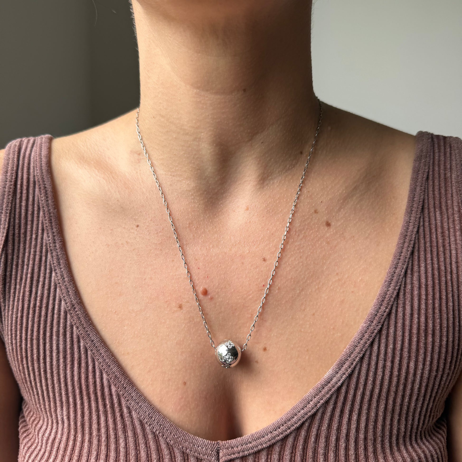 Cadena de plata con bolita con diamantes de laboratorio 1ctw