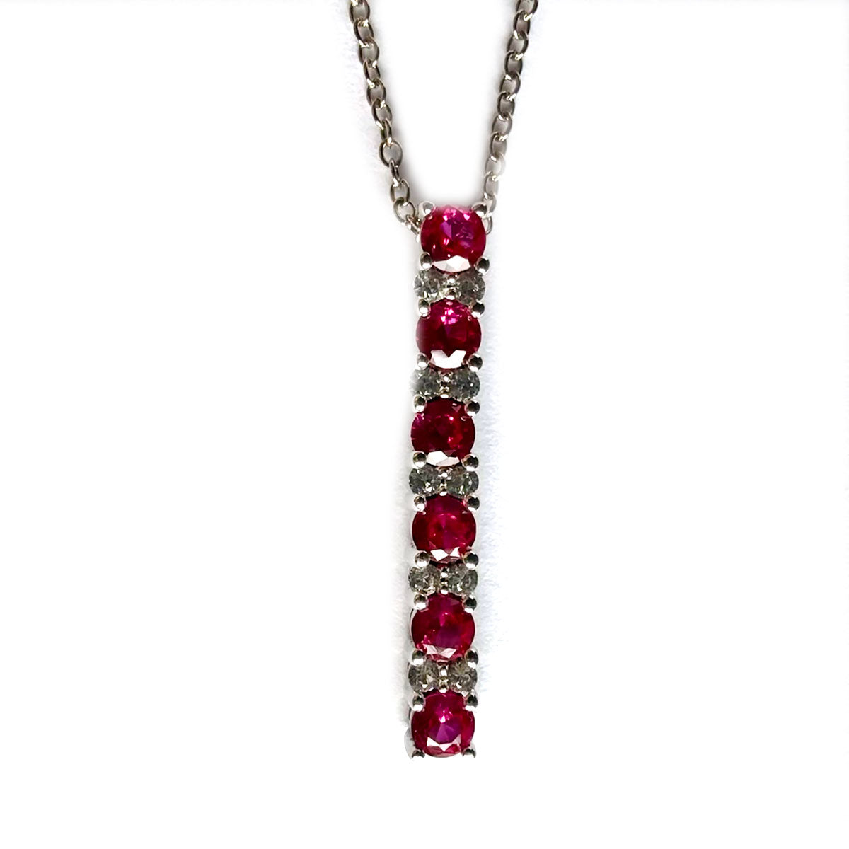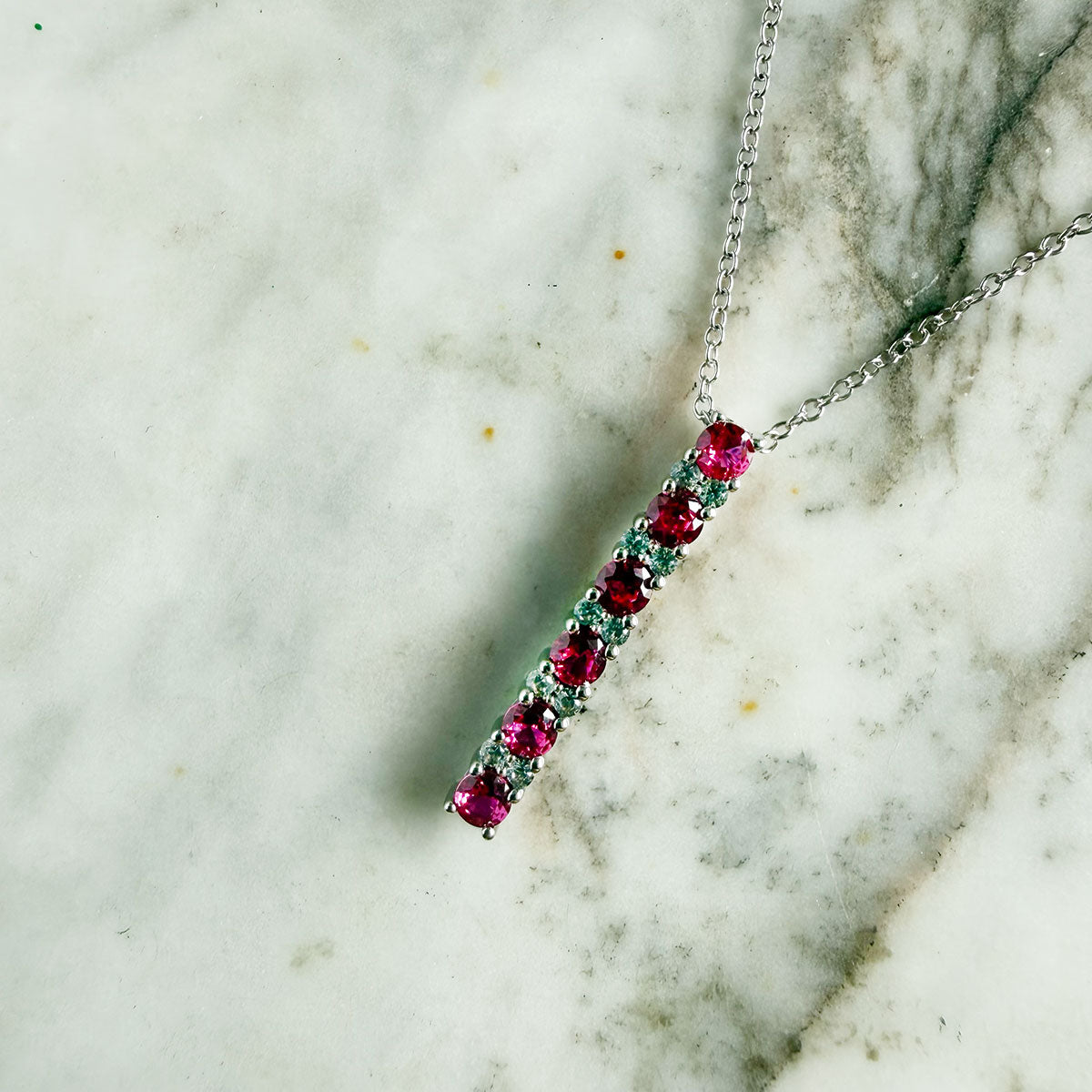 Cadena de plata con dije de barra de rubíes y zafiros blancos de laboratorio