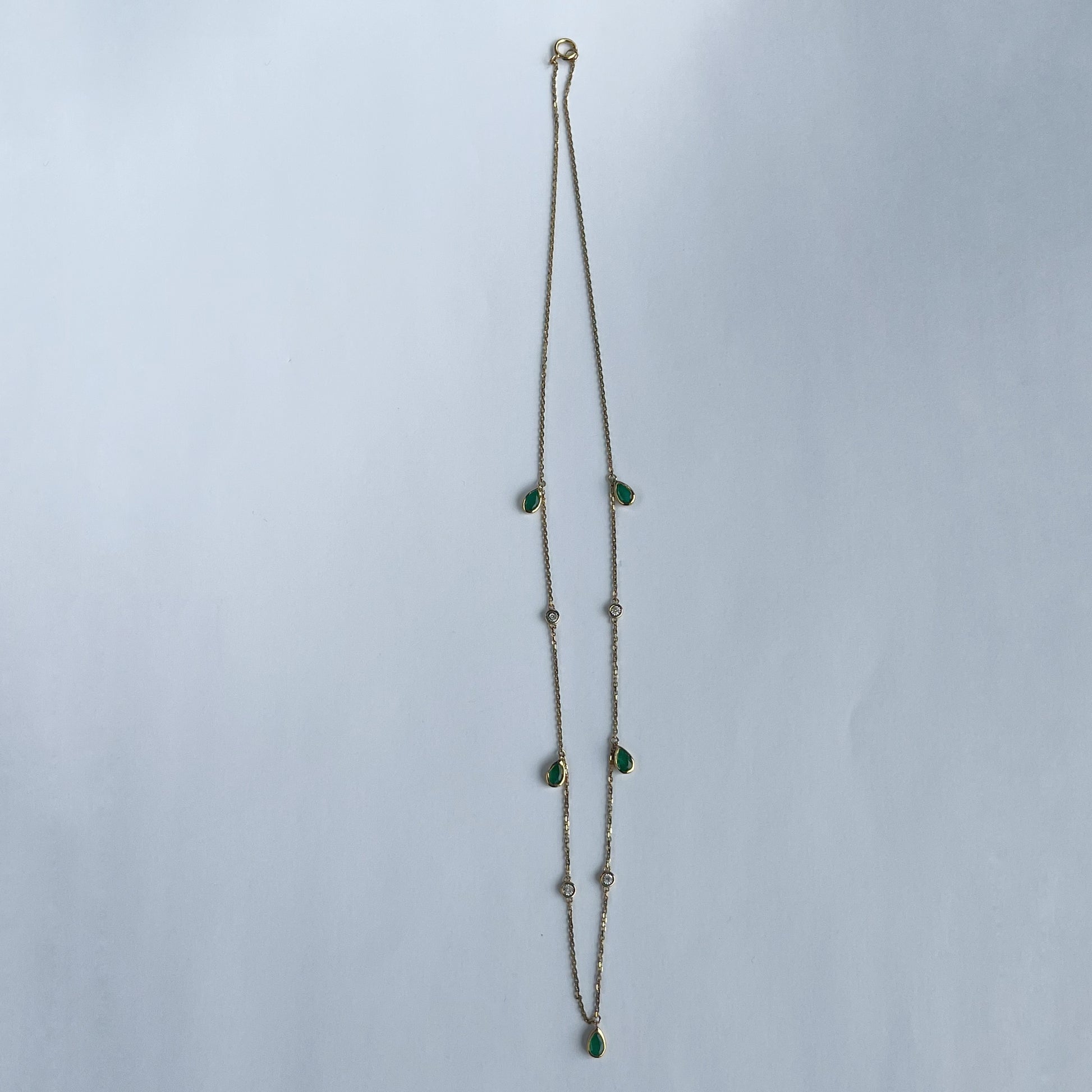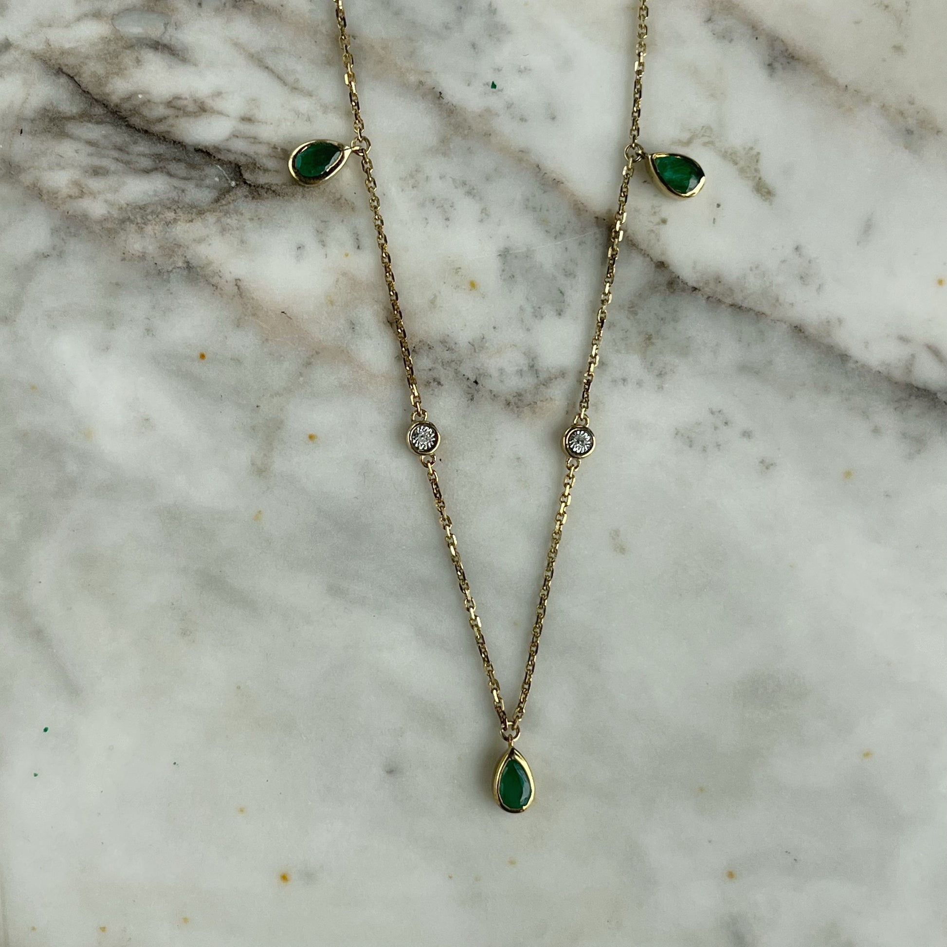 Collar de oro amarillo 10k con peras de esmeraldas colgantes y diamantes 0.02ctw