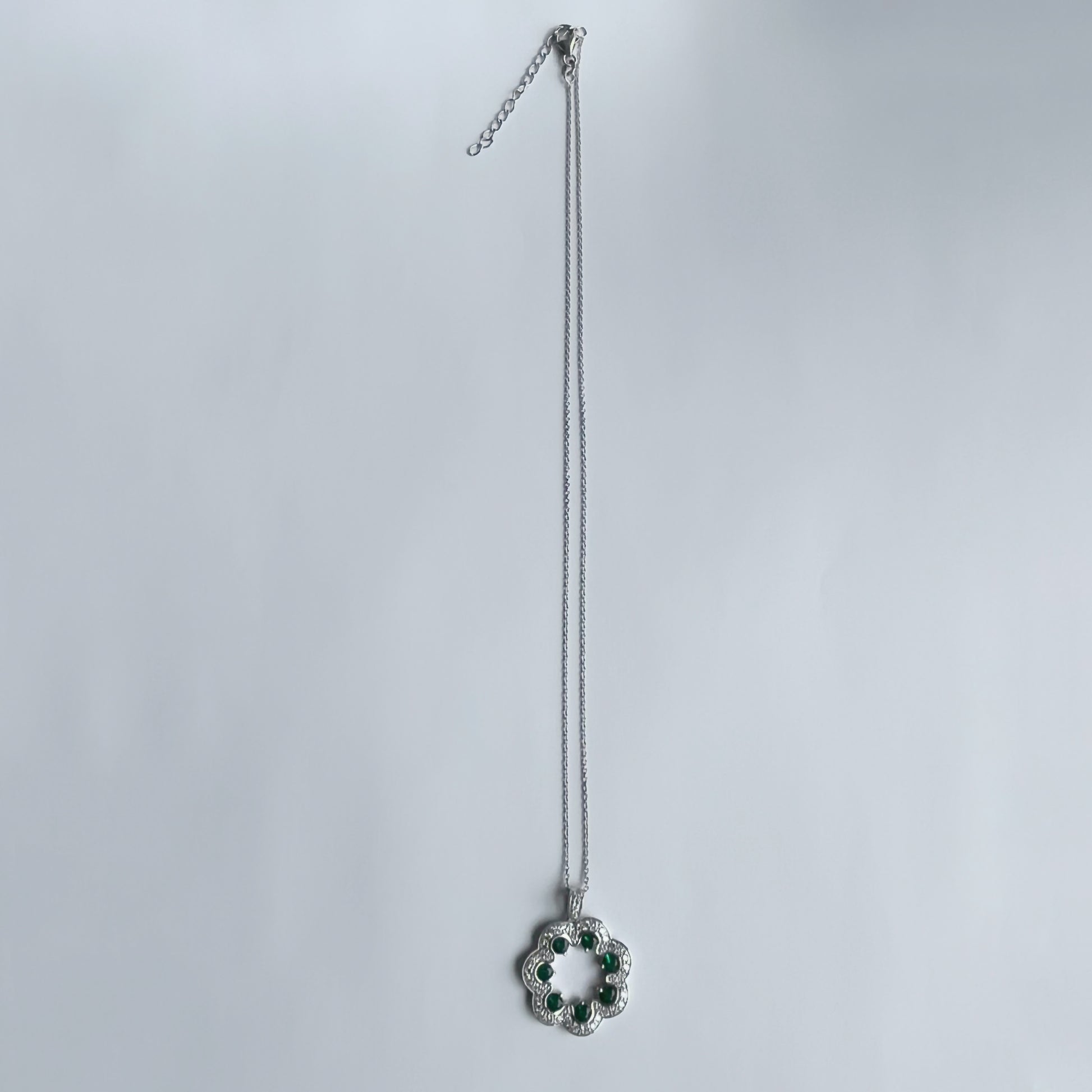 Collar de plata con medallón de esmeraldas y diamantes de laboratorio 1.35ctw