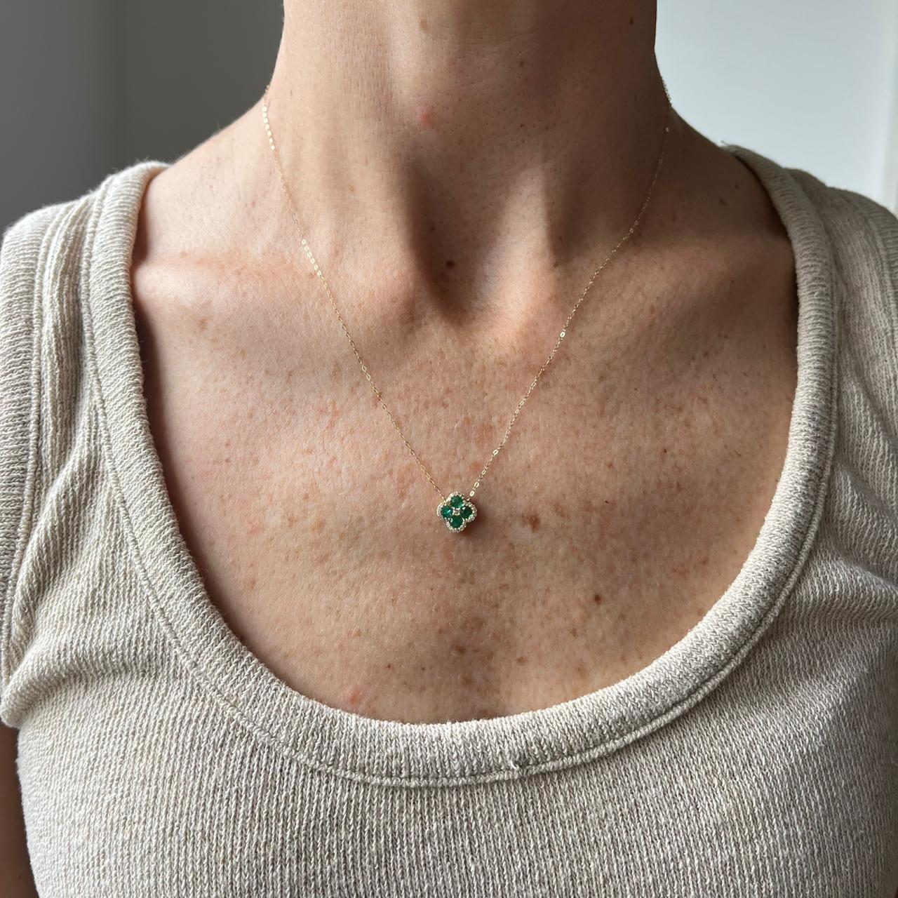 Collar en oro amarillo 14K con flor de esmeraldas y diamantes 0.15ctw