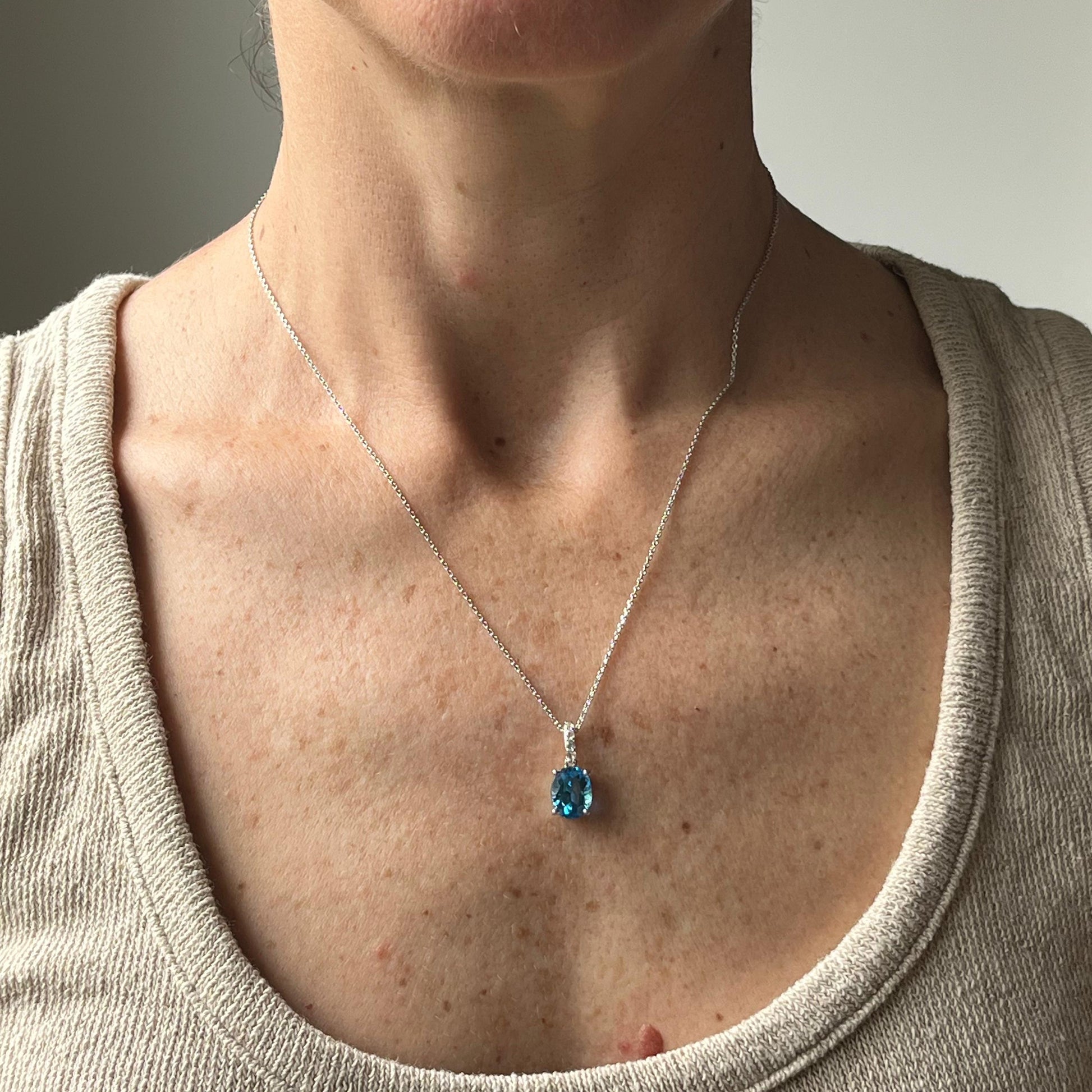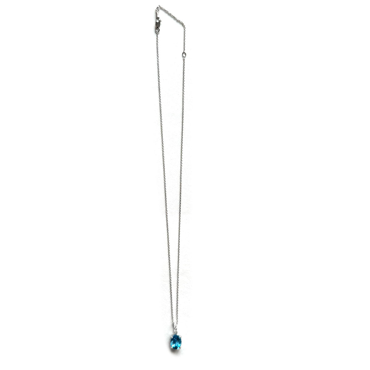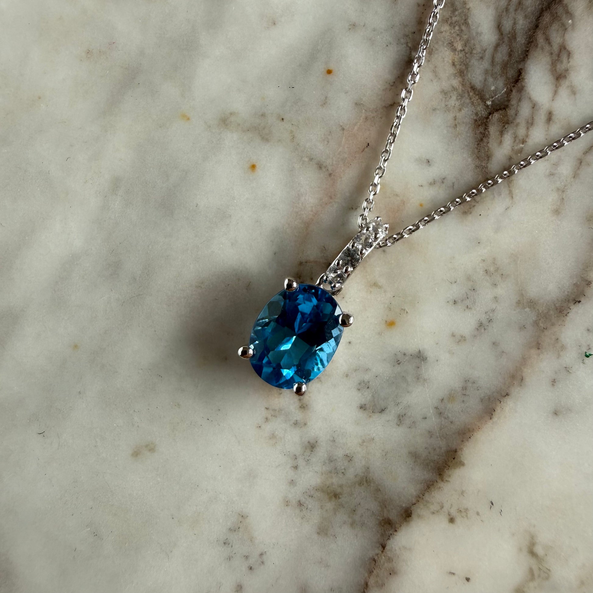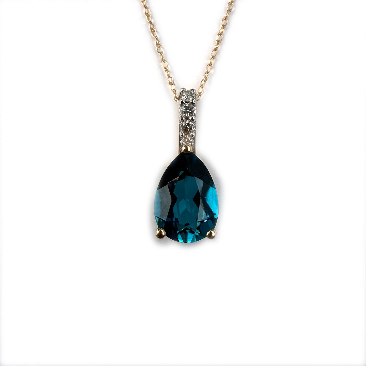 Collar en oro amarillo 14K con gota de topacio london blue y pasa cadenas de diamantes 0.08ctw