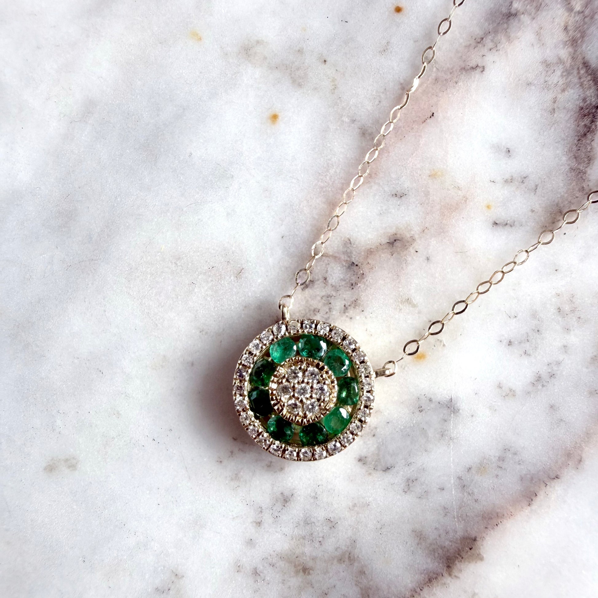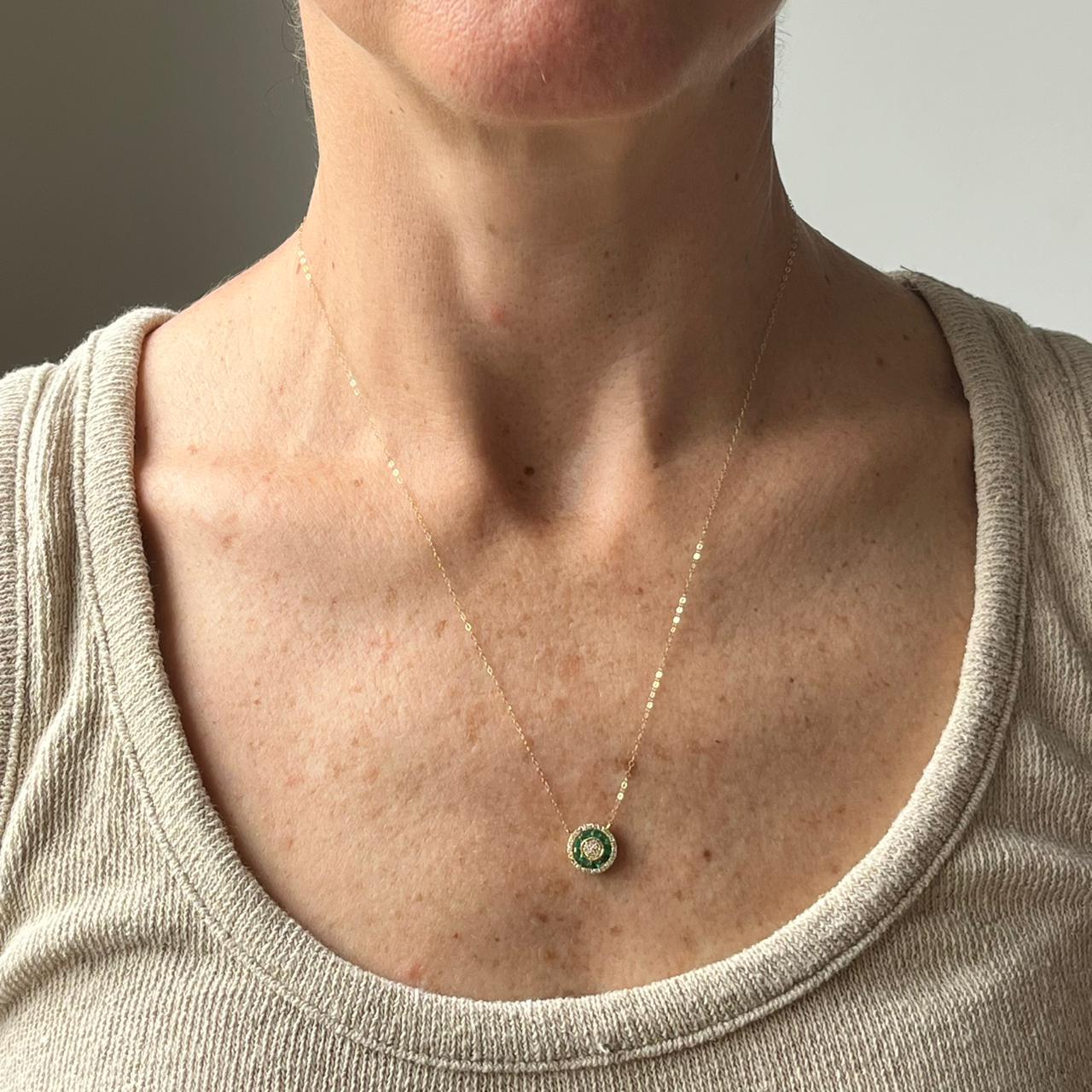 Collar en oro amarillo 14K con redondo de esmeraldas 0.30 ctw y diamantes 0.15ctw