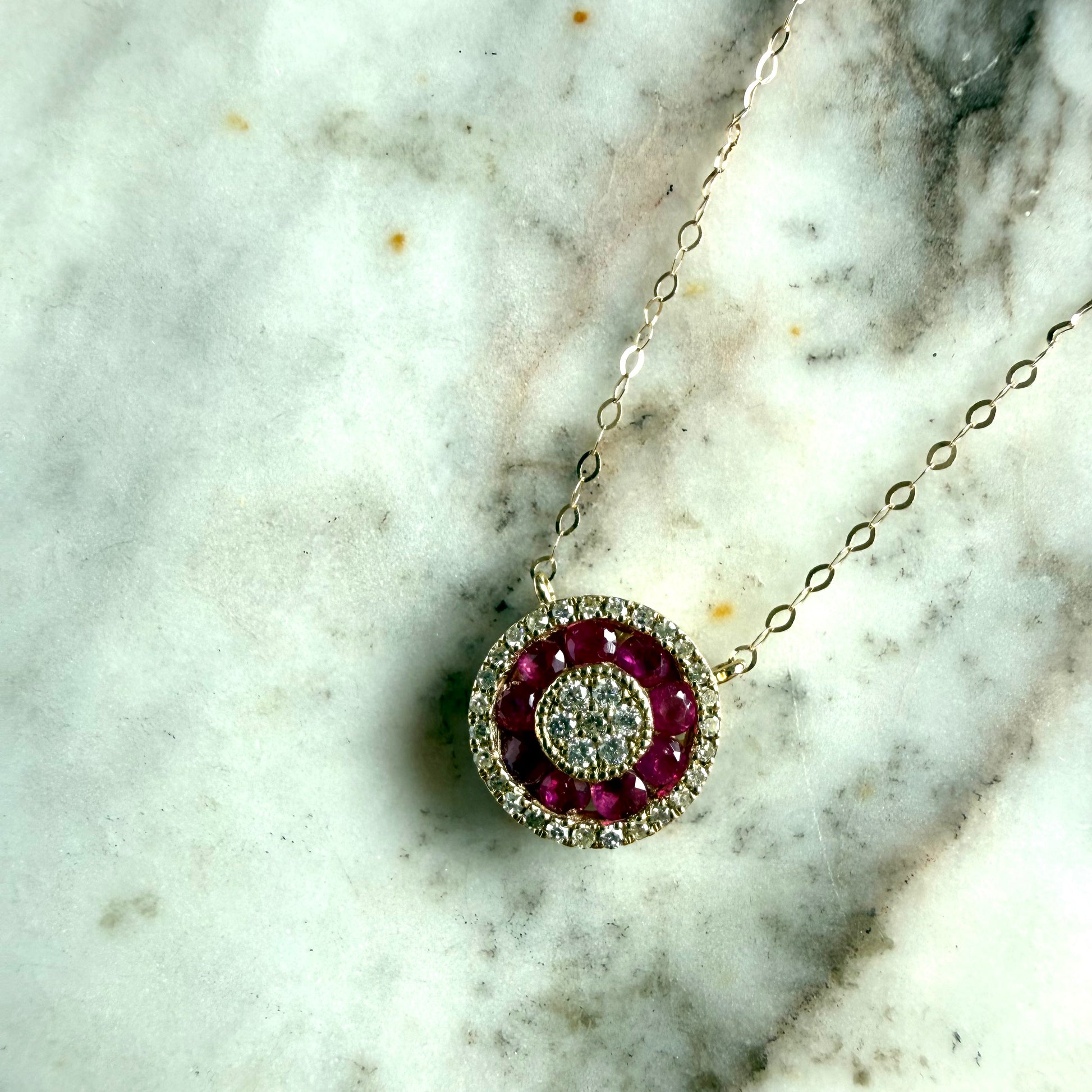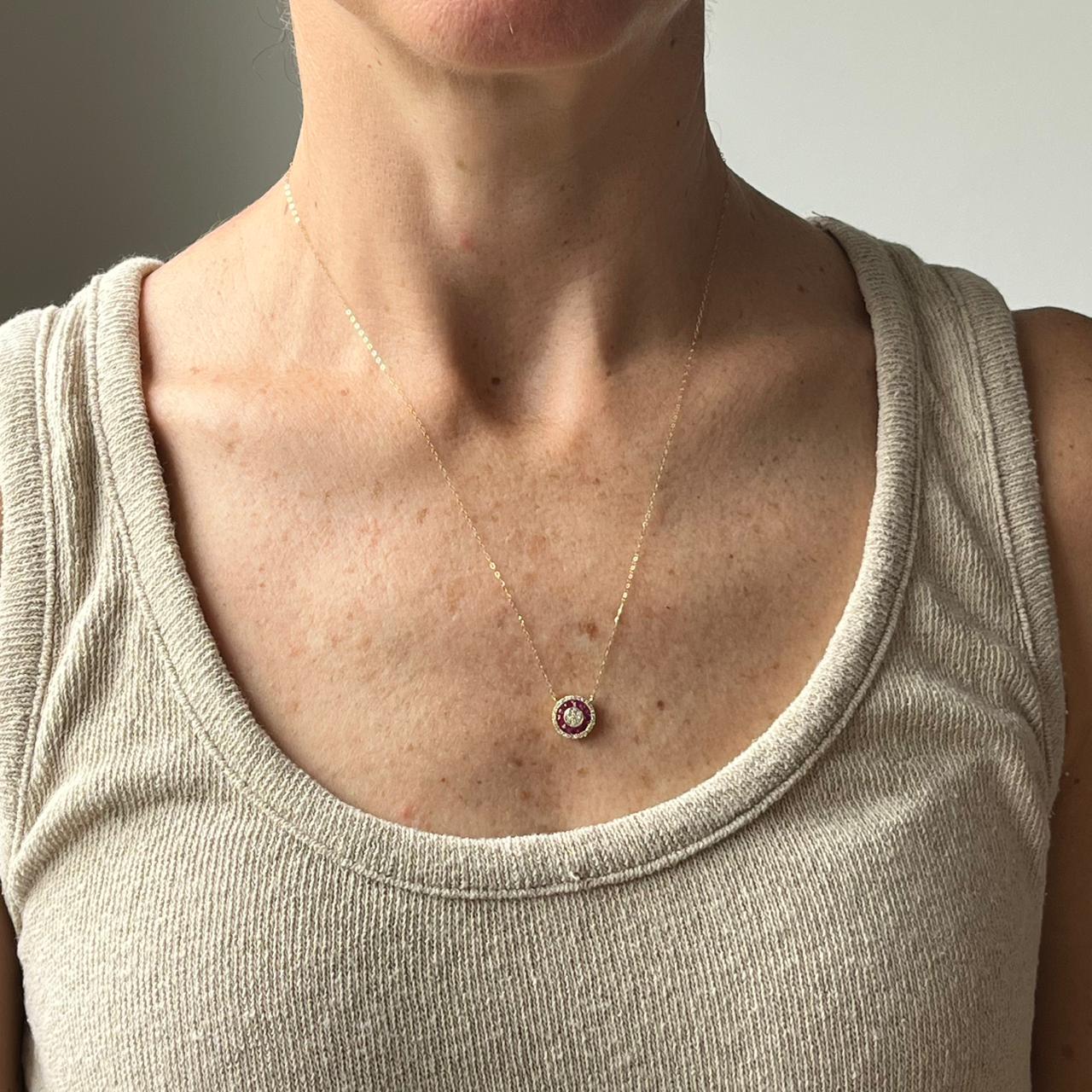 Collar en oro amarillo 14K con redondo de rubíes 0.50 ctw y diamantes 0.15ctw