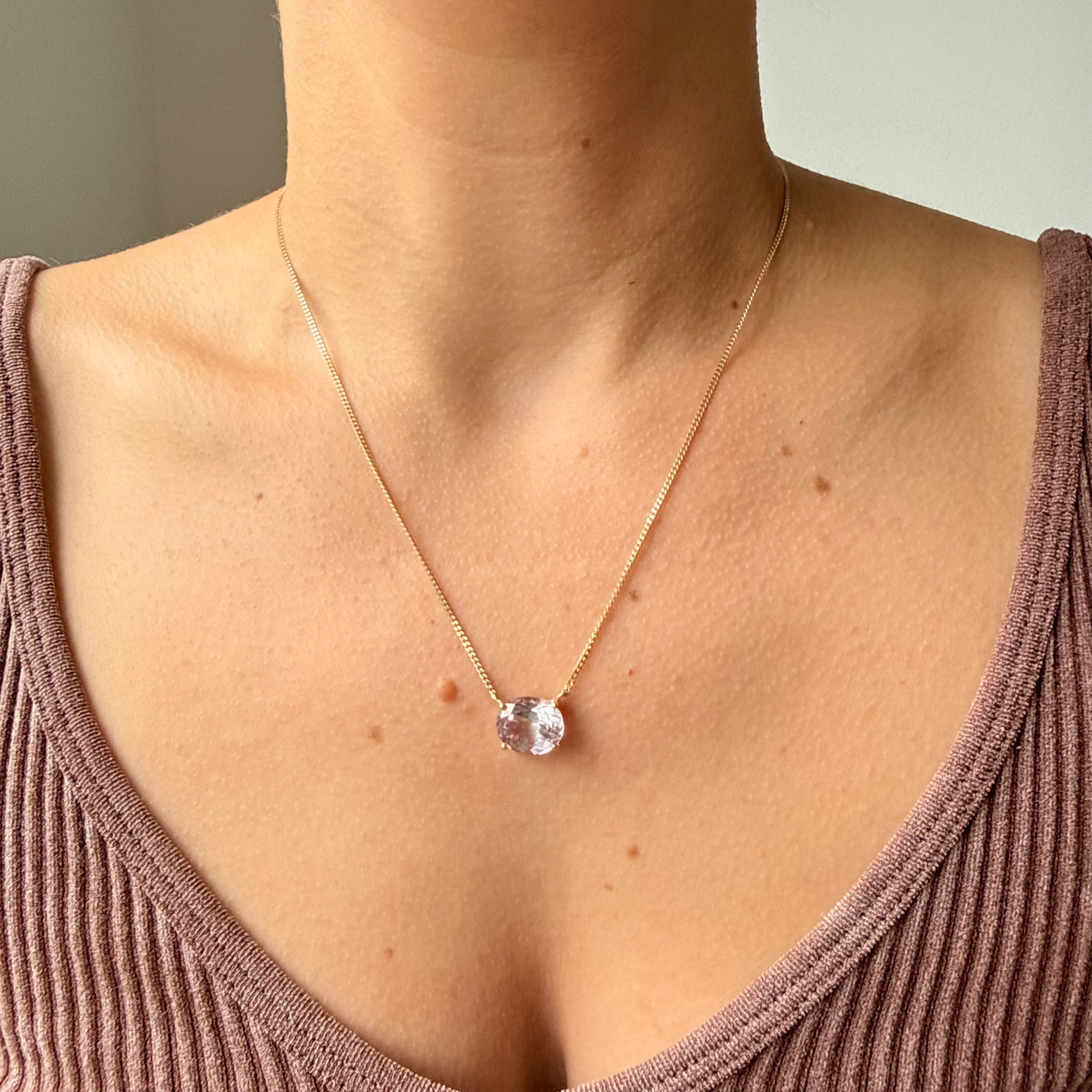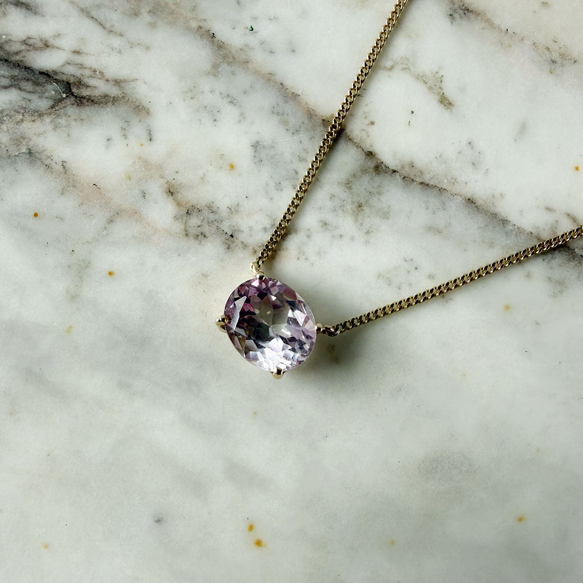 Collar en oro amarillo 14k con topacio rosado ovalado