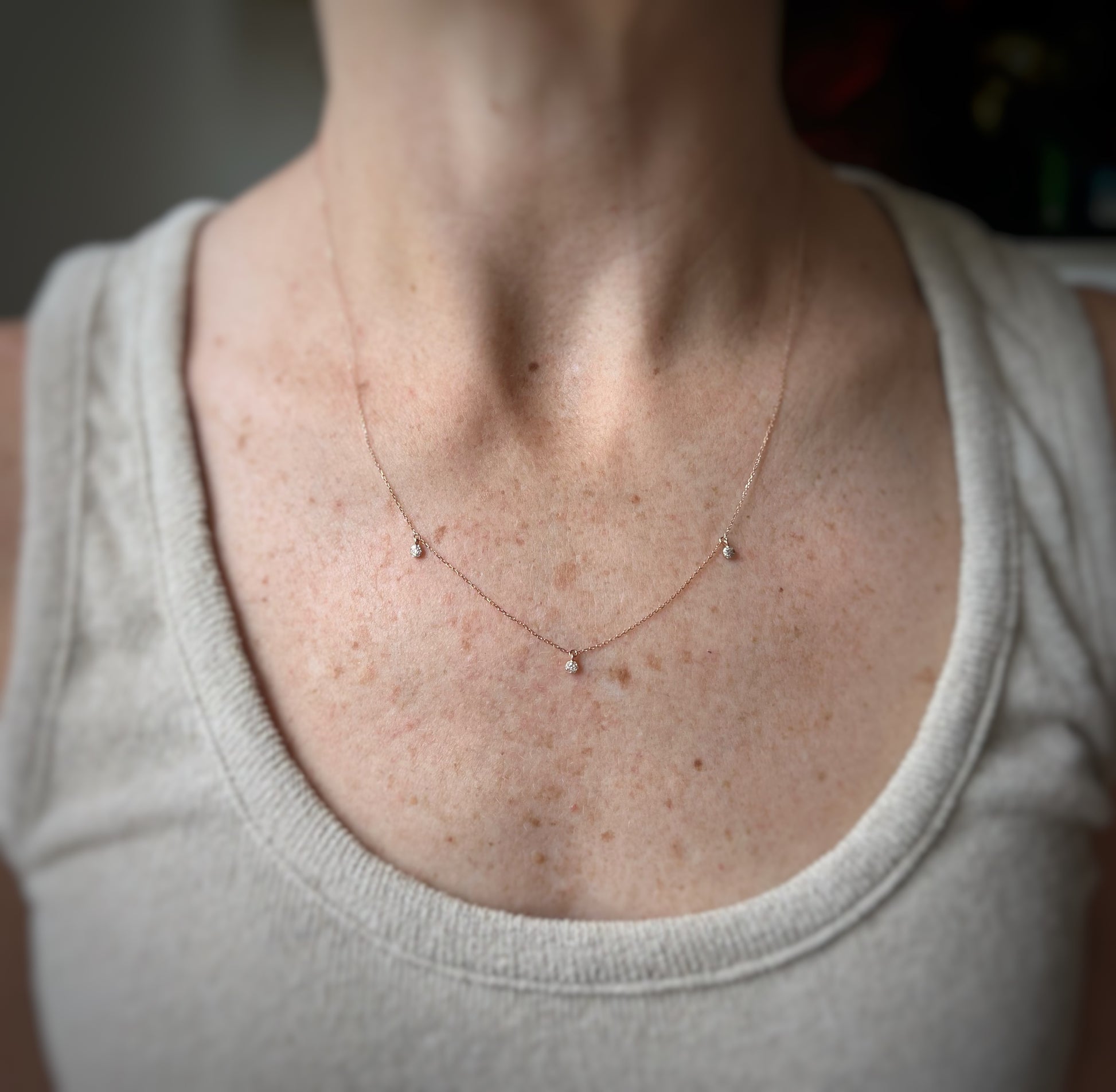 Collar en oro rosa 14K con tres colgantes de diamantes pequeños 0.07ctw