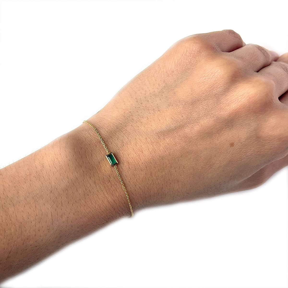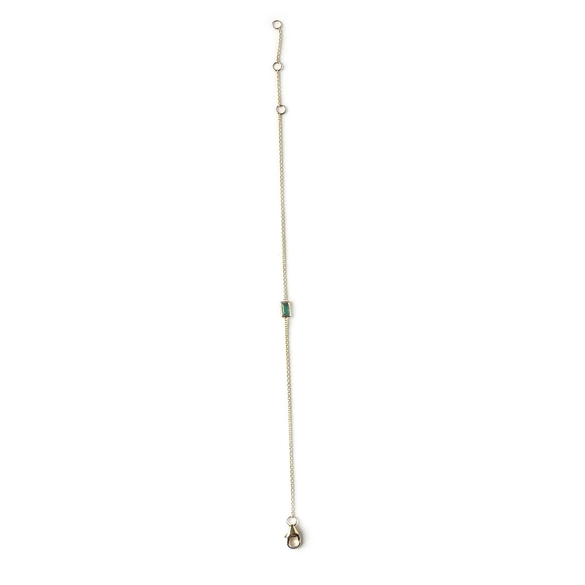 Pulsera con esmeralda corte esmeralda verde intenso 0.15ct biselada con cadena en oro amarillo 14k