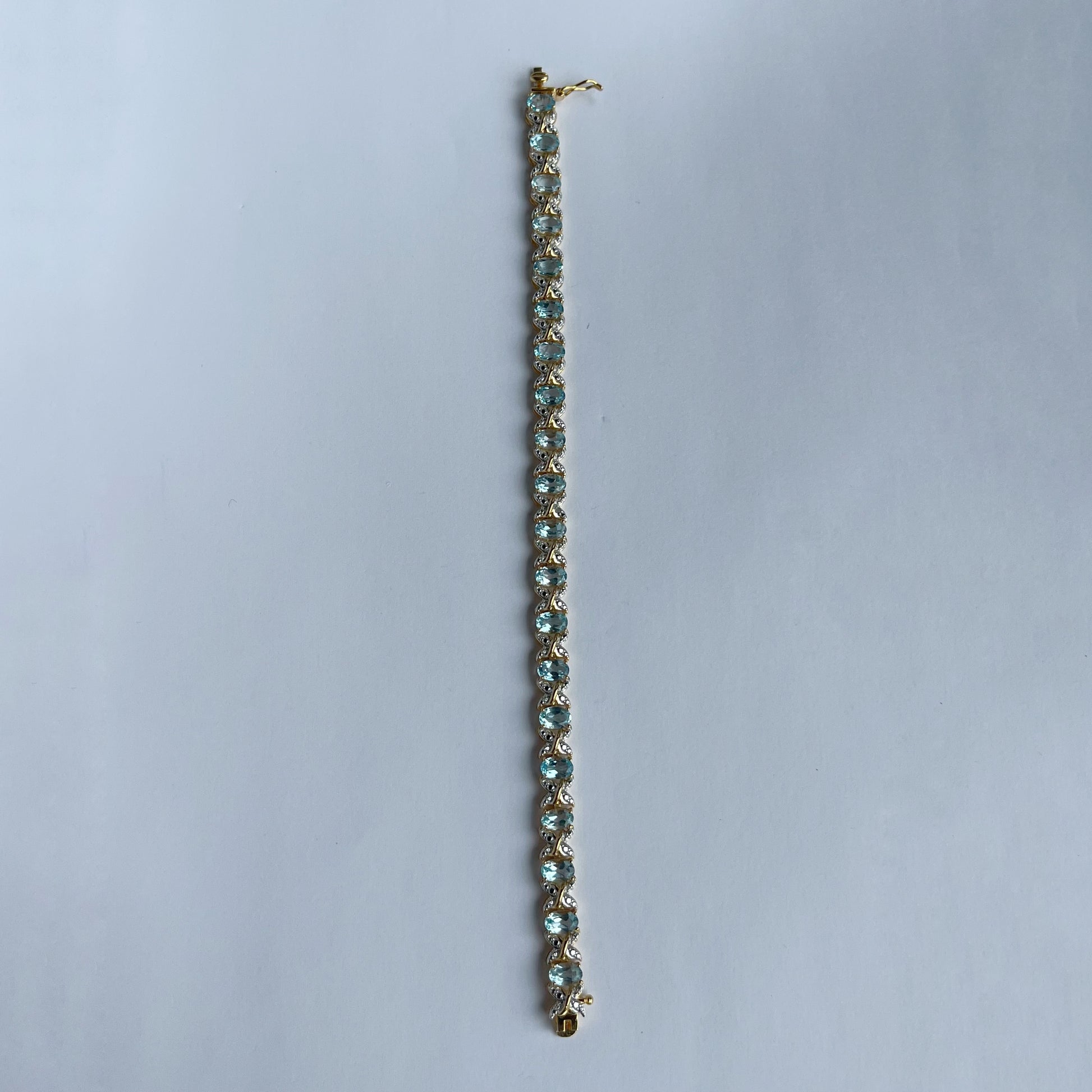 Pulsera de plata con baño de oro con topacios azules ovalados
