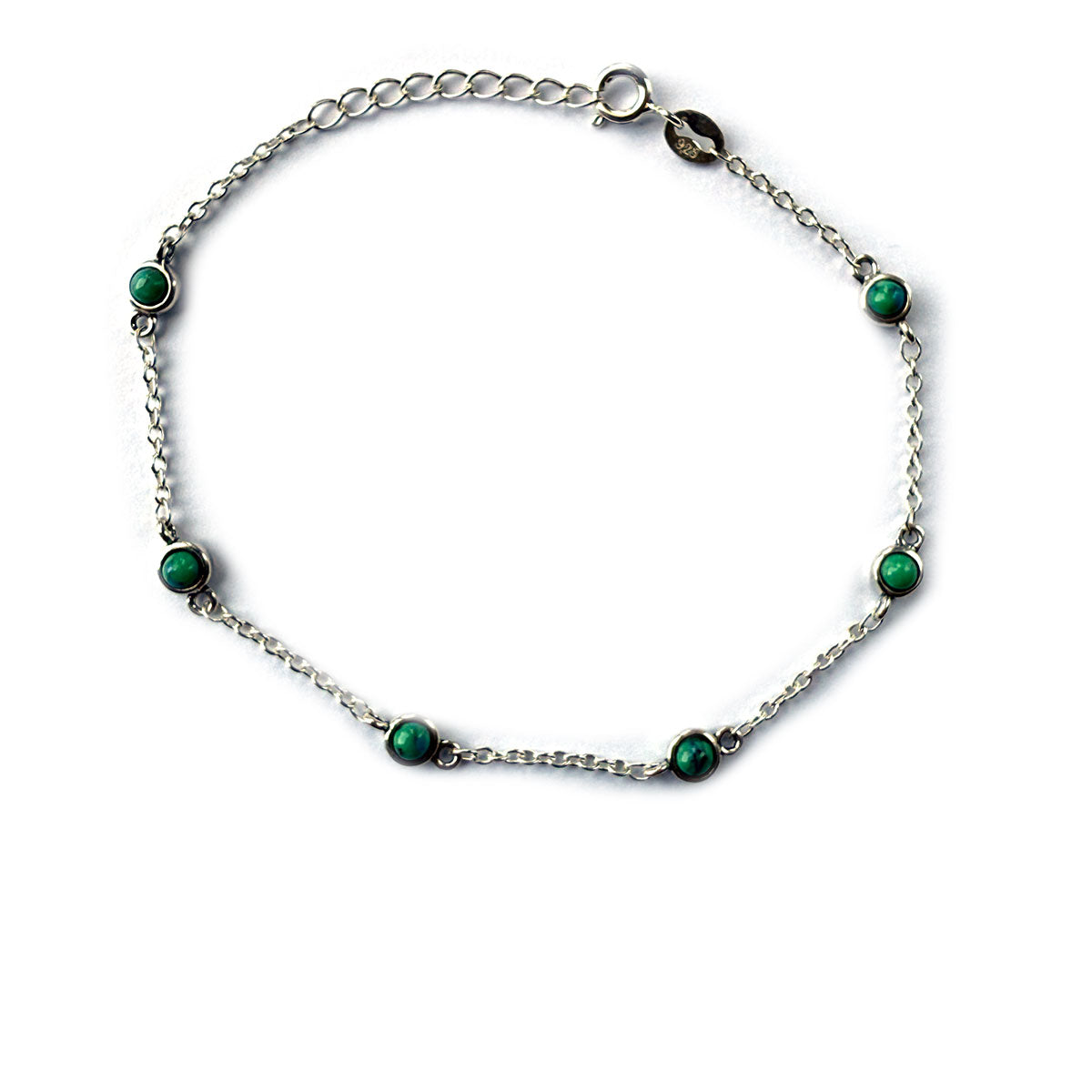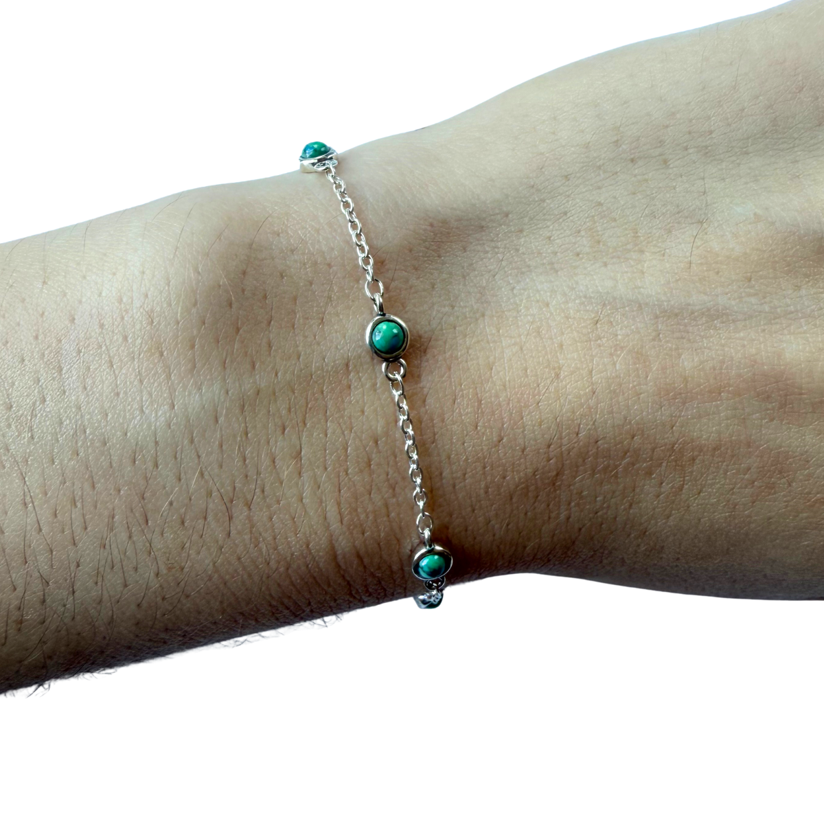 Pulsera de plata con estación de turquesa redondas