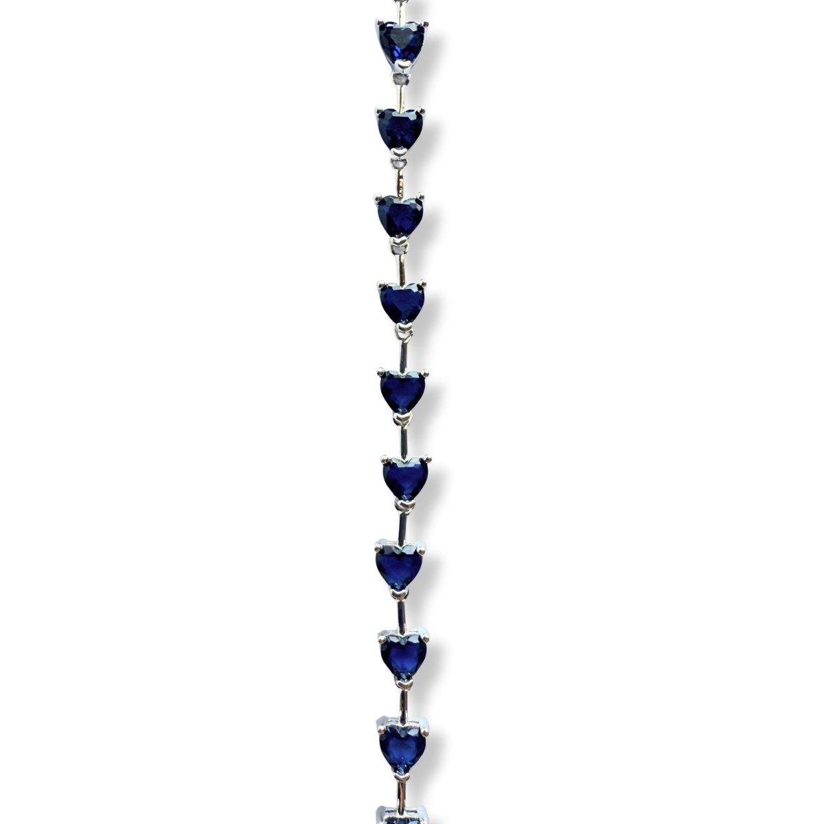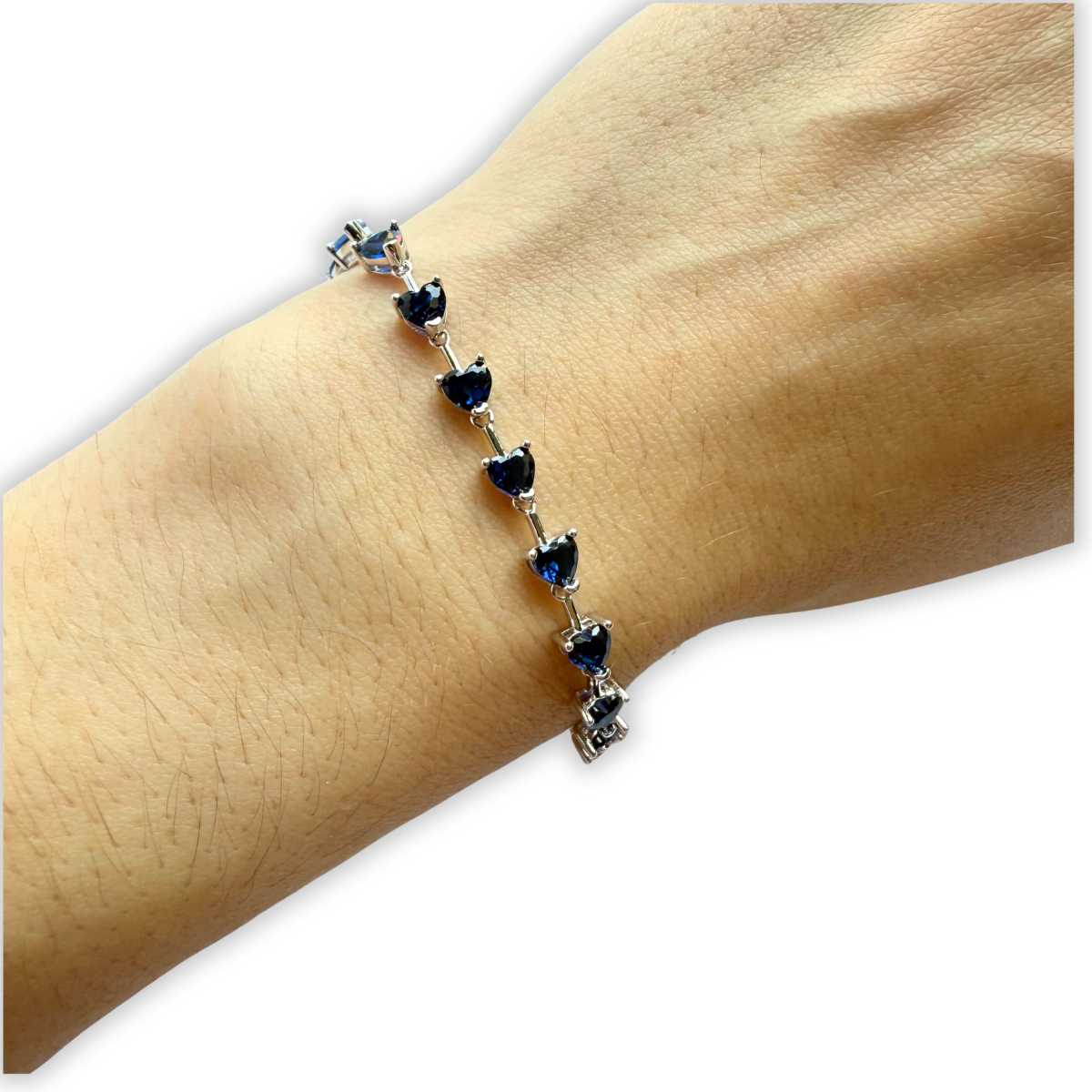 Pulsera de zafiros azules de laboratorio en forma de corazón en plata