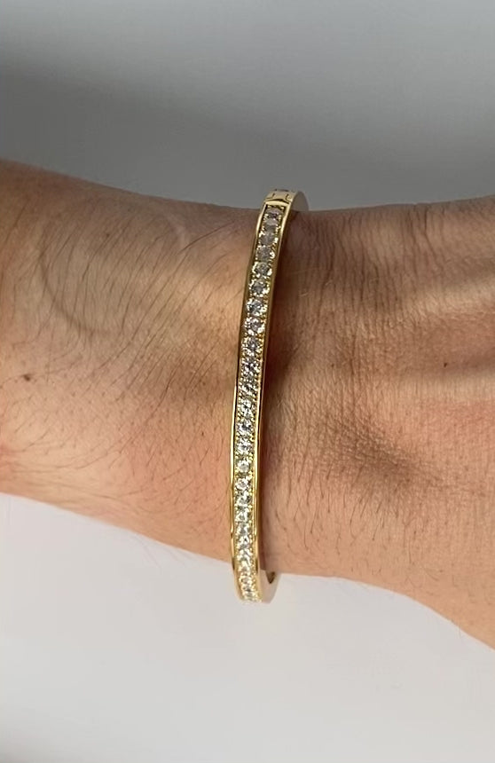 Pulsera dura en plata con baño de oro amarillo y circonitas