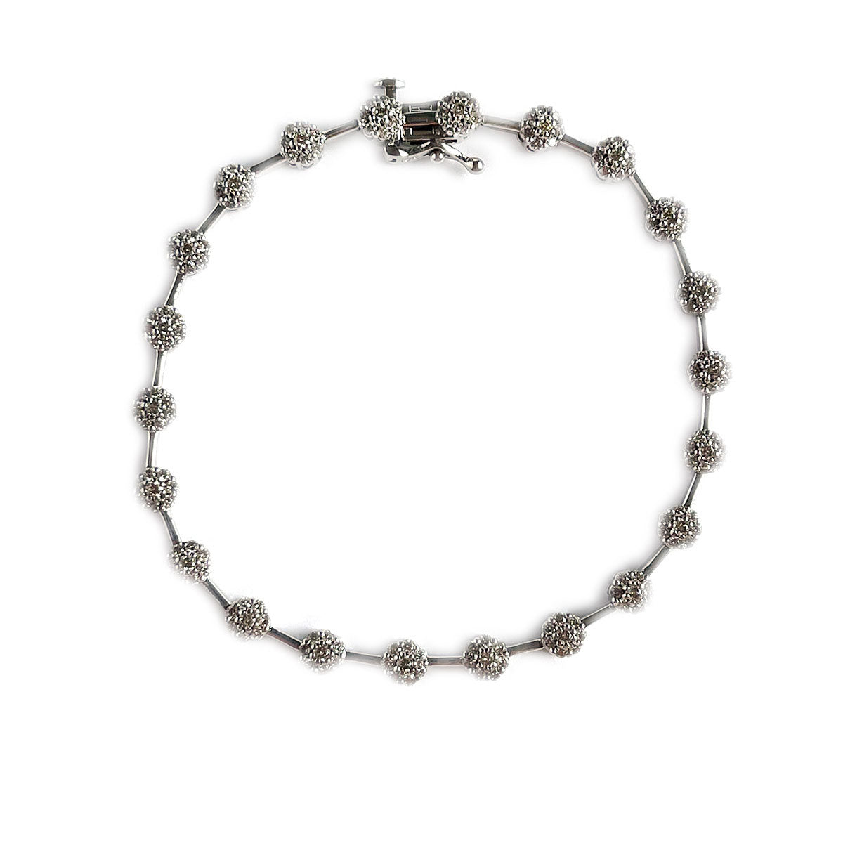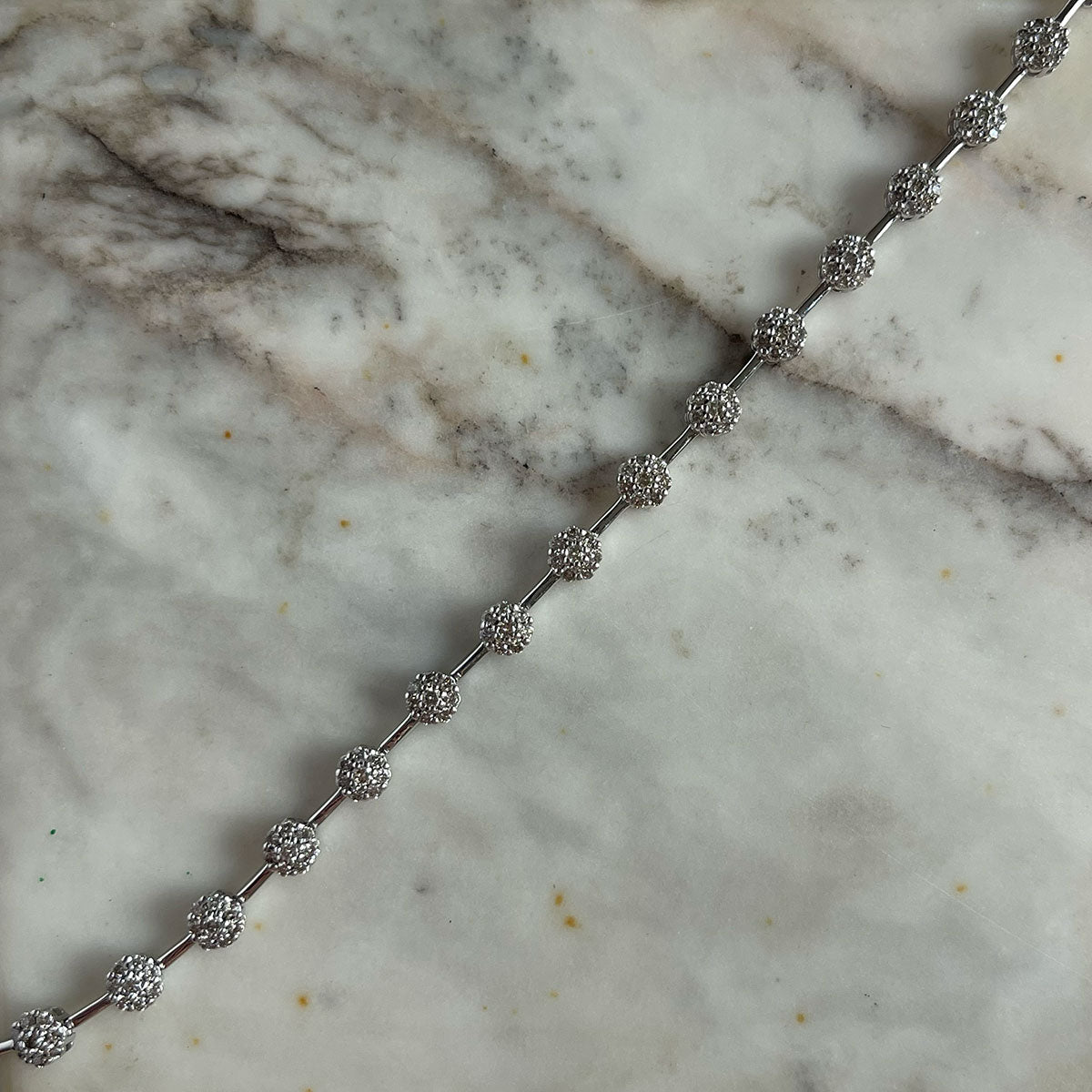 Pulsera en oro blanco 10K con 2ctw de diamantes con florcitas