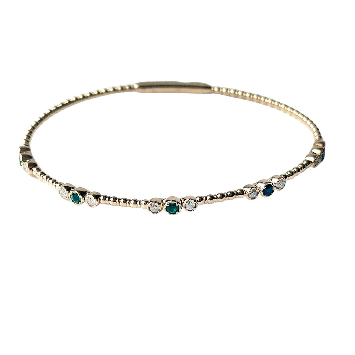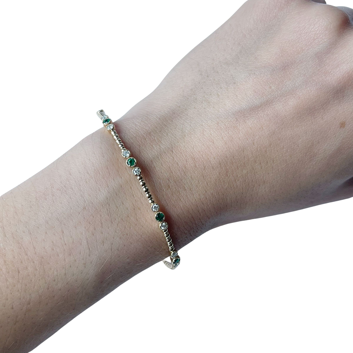 Pulsera flexible de oro amarillo 14k con grupos de esmeraldas 0.25ctw y diamantes 0.3ctw