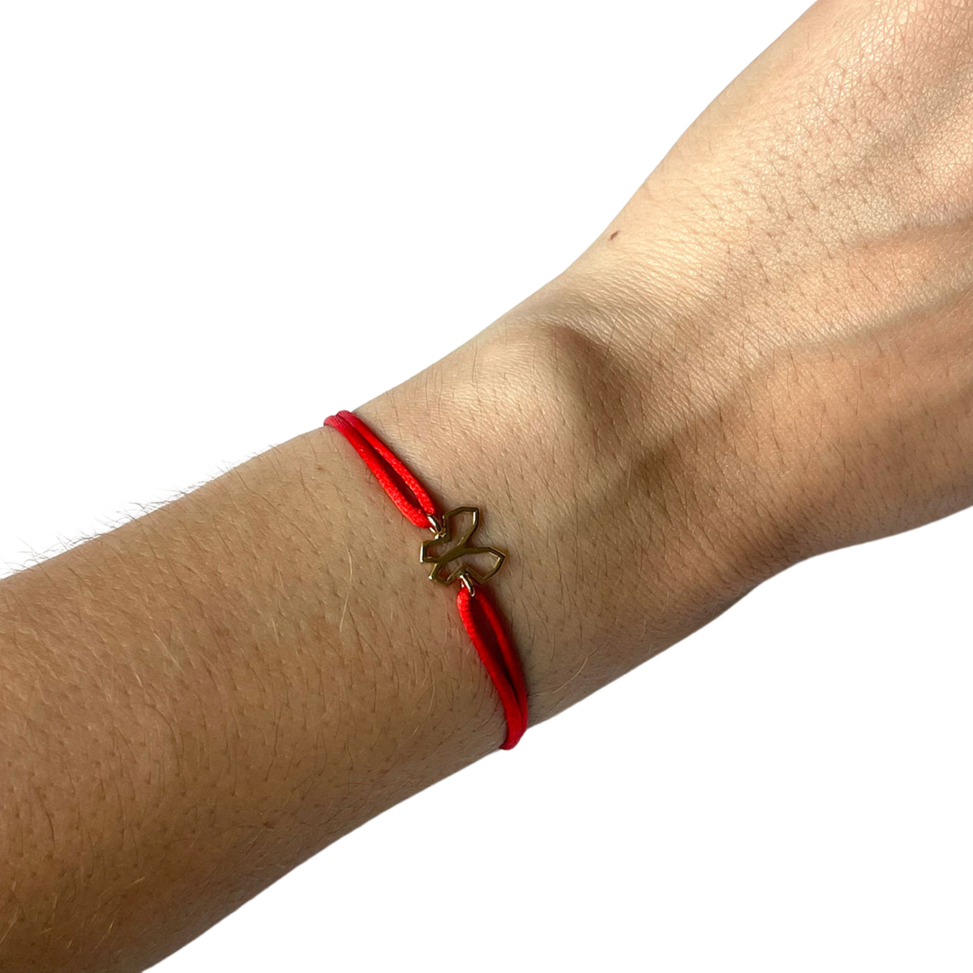 Pulsera Mariposa de oro amarillo 18k con cordón rojo